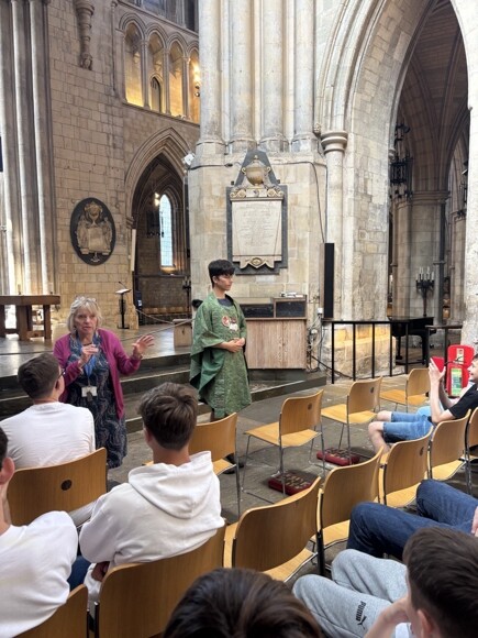 On the 27th June the Religious Studies department took a group of Year 10 students to London. It was a very hot day but, regardless of the heat, students had a fantastic time. The morning started with a tour of Southwark Cathedral where students learnt about the history of the Cathedral and Christianity’s beliefs and practices. The students really impressed the Cathedral staff with their subject knowledge. They were even treated to a glimpse of Hodge, the famous Cathedral cat! The tour was followed by a ‘hot seat’ session where they put their questions to the Revd Canon Michael Rawson who is the Sub Dean and Canon Pastor. Students had plenty of questions for Michael about a wide range of topics, from his beliefs to Christian teachings to contemporary moral dilemmas. In the afternoon students visited The Clink prison attraction to learn about the history of crime and punishment as part of their Thematic Unit. Some students really dressed for the occasion, changing into orange prison jumpsuits. Students were treated to an engaging talk and were able to get hands on with some of the torture implements.