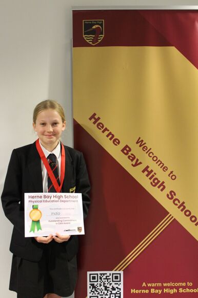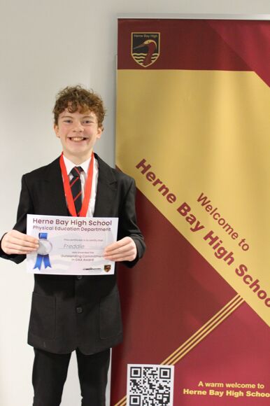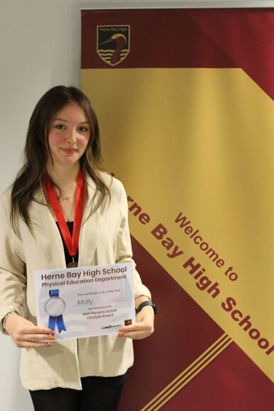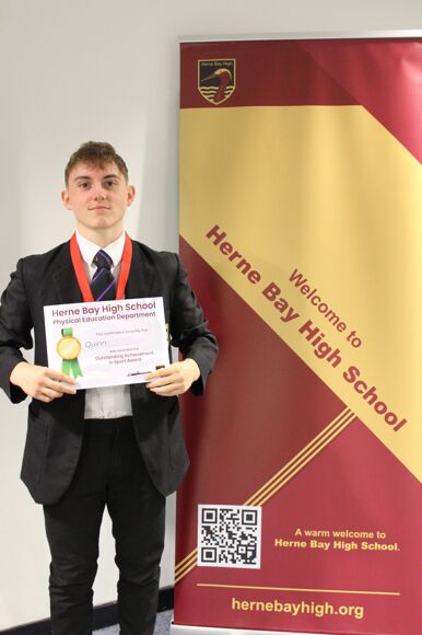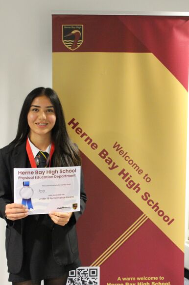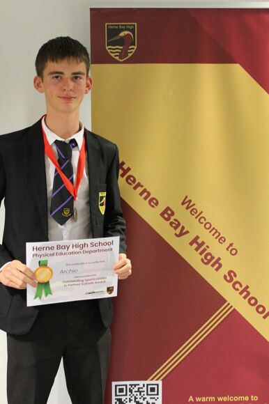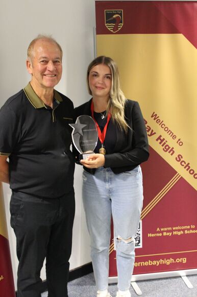 The winner of the PRIDE award this year was Zehra Hewitt-Mustafa. Life has not been traditional for Zehra, from being a carer for her mum since Year 8 and having to be completely isolated from friends and school for 3 months during COVID to keep mum safe. From the moment she joined HBHS, Zehra took part in as many sports as she could, representing the school in Netball, Rounders and Athletics to name a few. Just taking part wasn’t enough. She soon joined the leadership academy and volunteered countless hours of her free time to give other students numerous opportunities in sport and different activities. This went beyond Herne Bay High School with Zehra offering her time to support students from external primary and secondary schools, as well as local sports clubs. None of this ever got in the way of her education. She achieved excellent marks in her A Levels and excelled on her OCR Sport Course. She is now a student ambassador at the University of Kent and is studying for a degree in Law.